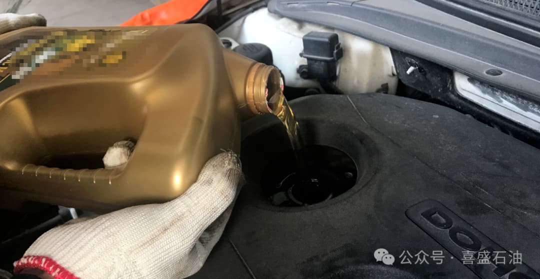 ▼更换完滤清器之后,就可以开始加注新的润滑油了。将漏斗对准发动机的润滑油加注口,然后缓慢地将新润滑油倒入漏斗中,让润滑油顺着漏斗流入发动机内部。需要注意的是,润滑油的加注量要根据车辆的实际使用情况以及汽车厂家给出的建议来确定,在加注过程中,要控制好量,既不能加注过多,也不能加注过少,否则都会影响发动机的正常运转。